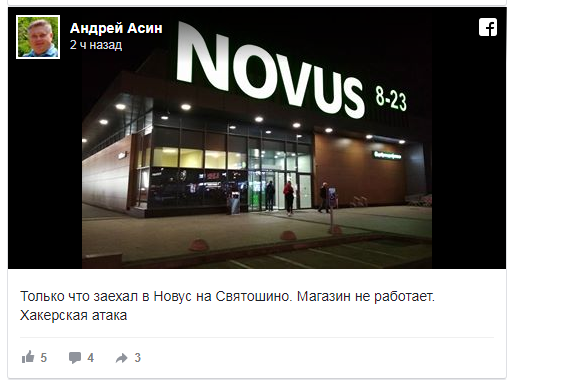 Вечером вторника, 24 октября, вероятно, в Киеве внезапно были закрыты супермаркеты сети Novus. Вероятно, это произошло в результате хакерской атаки или нового компьютерного вируса.