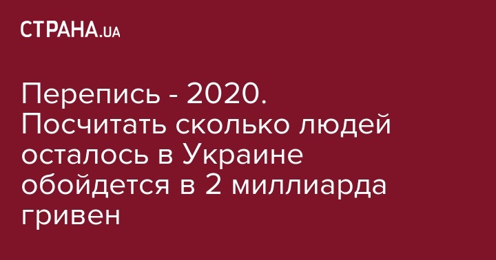 Вице-премьер-министр Украины Павел Розенко сообщил, что техническая подготовка и проведение переписи населения в 2020 году, обойдутся бюджету не менее чем в 2 млрд гривен.