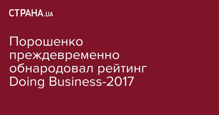 Президент Петр Порошенко обнародовал данные рейтинга Всемирного банка по условиям ведения бизнеса.Об этом он написал в Twitter.