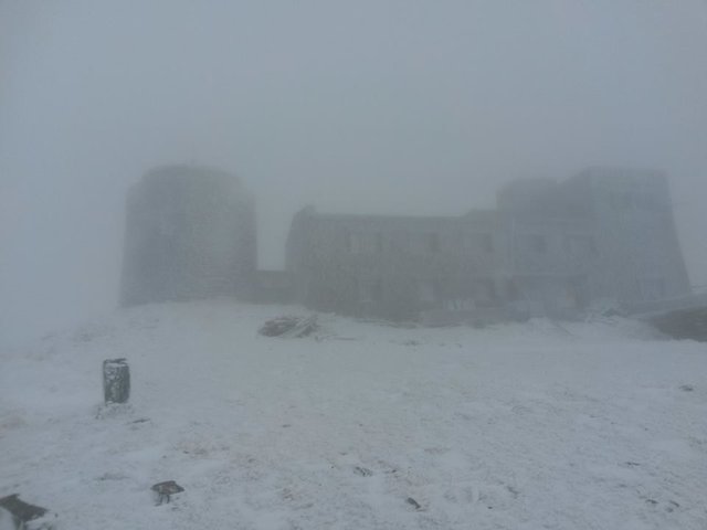 Так, на горе Поп Иван Черногорский уже лежит снег, облачно и ветрено, температура воздуха – 5°С, видимость до 100 метров.