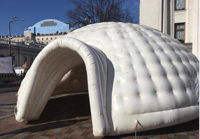 На девятый день МихоМайдана перед Верховной Радой появилась надувная палатка в виде жилища эскимосов - иглу. Об этом сообщает корреспондент "Страны".