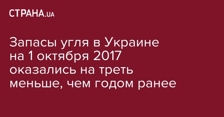 По состоянию на 1 октября 2017 запасы каменного угля в Украине составляли 2,749 млн тонн, что на 33,3% меньше, чем ровно год назад.
