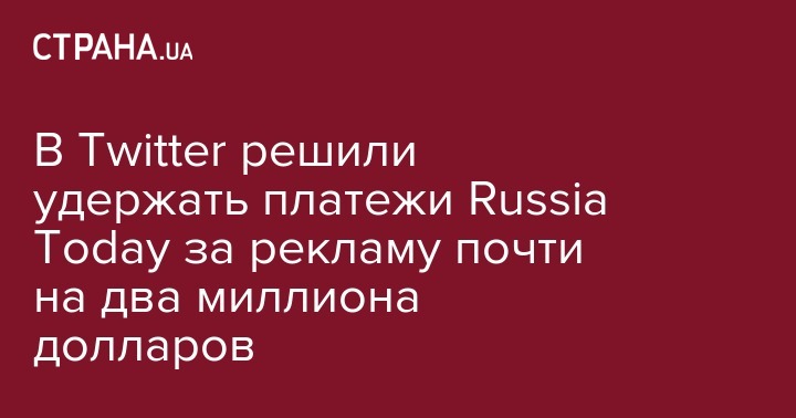 В Twitter решили удержать платежи Russia Today за рекламу почти на два миллиона долларов
