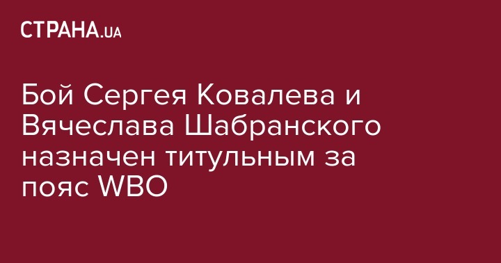 Бой Сергея Ковалева и Вячеслава Шабранского назначен титульным за пояс WBO