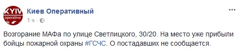 Сегодня, 28 октября, в Киеве на ул. Светлицкого 30/20 в Подольском районе Киева горят МАФы. Об этом сообщает портал "Киев Оперативный" на своей странице в Facebook.