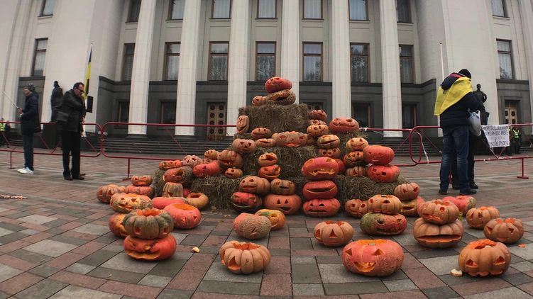 12:12 На МихоМайдане помнят, что сегодня - Хэллоуин. Перед Верховной Радой сложили гору тыкв.