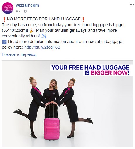"Этот день настал, с сегодняшнего дня ваша бесплатная ручная кладь стала больше" - говорится в сообщении компании.