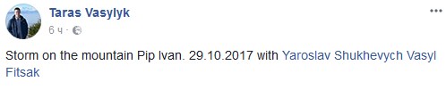 "По состоянию на 08:00 29 октября на горе Поп Иван Черногорский облачно, видимость до 30 метров. Ветер юго-западный до 26 м/с. Температура окружающей среды минус 6 градусов", - отмечается в сообщении отряда.