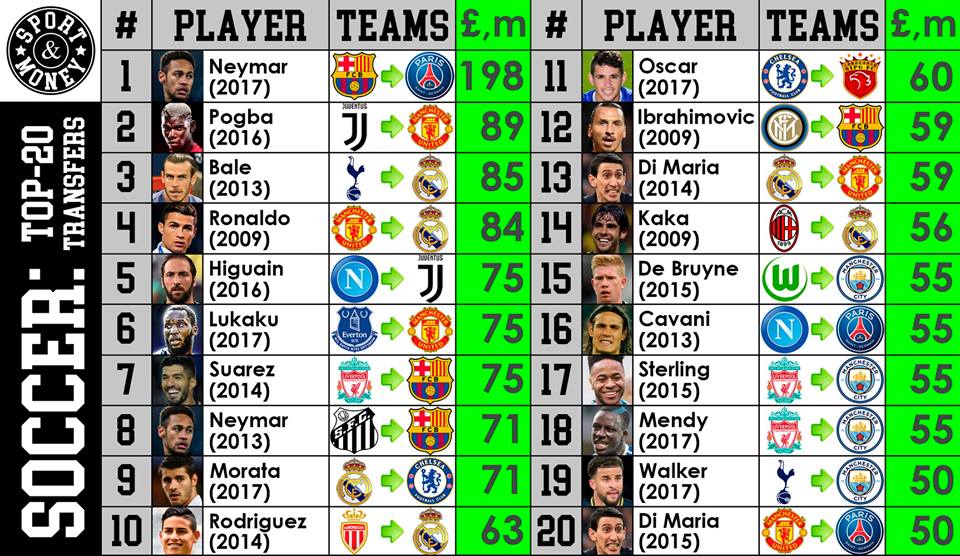 "Не успела мировая футбольная общественность пережить в августе самый громкий в истории футбольный трансфер, автором которого стал бразилец Неймар, как ему на смену спешит еще более будоражащая умы сделка", - сообщается на портале Sportsandmoney, который представила 20 самый громких футбольных трансферов в истории.