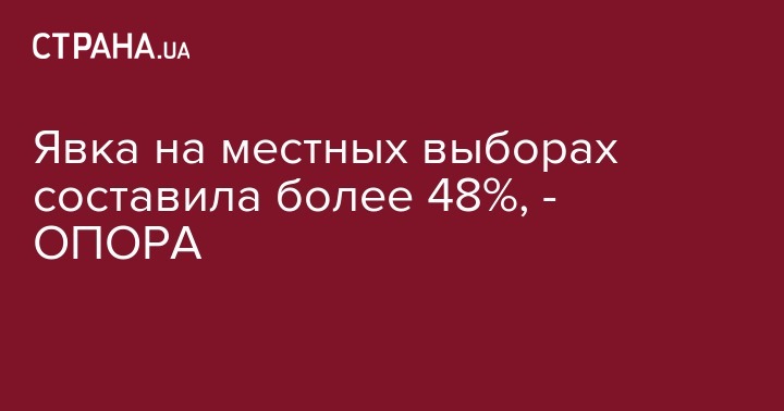 Сегодня, 29 октября, явка избирателей на местных выборах в ряде объединенных территориальных общин составила 48,2%. Об этом сообщила пресс-служба гражданской сети "ОПОРА".