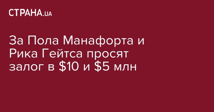 По данным журналистов, правительство США обратилось к суду с просьбой назначить залог в десять миллионов долларов для Пола Манафорта и в пять миллионов долларов для Рика Гейтса.