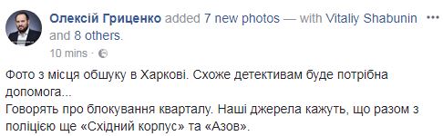 "Наши источники в Харькове говорят, что подтянулись титушки к месту обыска и уже якобы поступили звонки о заминировании", - добавил Гриценко.