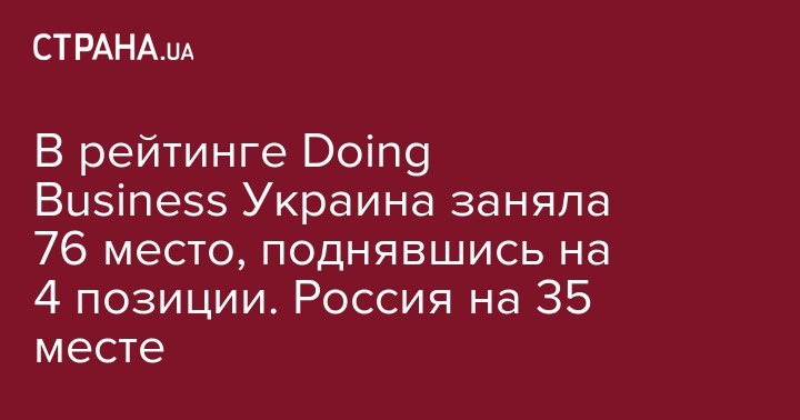 В рейтинге Doing Business Украина заняла 76 место, поднявшись на 4 позиции. Россия на 35 месте