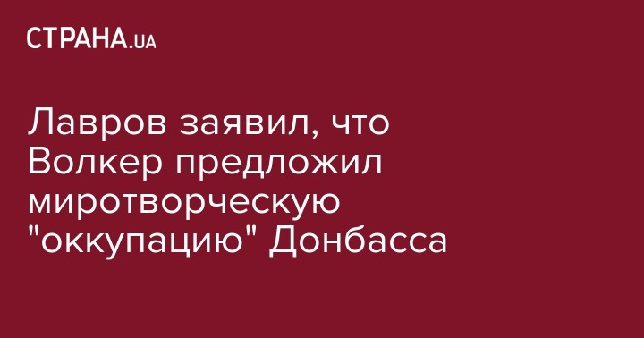 "Совсем недавно он (Волкер) был в Киеве, где сделал ряд заявлений, из которых стало ясно, какую альтернативу нашему проекту готовят кураторы украинской власти. Господин Волкер заявил, что нужно, чтобы миротворцы, он другое слово употребил, но смысл в этом, оккупировали весь Донбасс, взяли его в кольцо, и только потом США поддержат президента Порошенко в его действиях по выполнению всех обязательств, включая объявление амнистии, придание Донбассу особого статуса по формуле Штайнмайера и проведение выборов", - сказал Лавров.