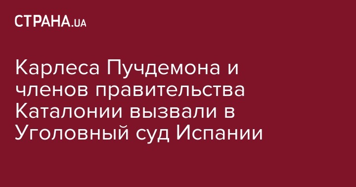 Президента Женералитата Каталонии в 2016-2017 годах и одного из лидеров процесса односторонней независимости Каталонии Карлеса Пучдемона вызвали в испанский уголовный суд, передает The Straits Times.