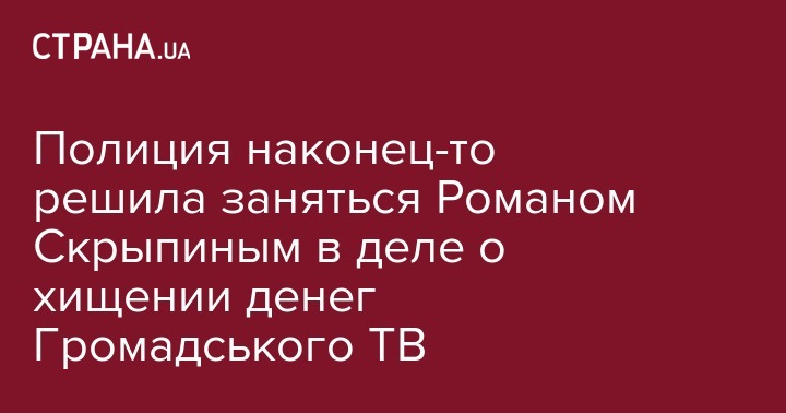 Печерское районное управление полиции Киева открыло уголовное производство по факту возможного присвоения бывшим руководителем общественного телевидения " Громадське ТВ" Романом Скрыпиным денежных средств телеканала.