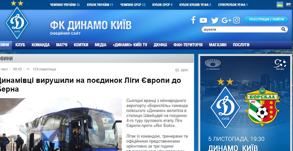 Сайт футбольного клуба "Динамо" отказался от русскоязычной версии и теперь доступен только на украинском и английском языках.