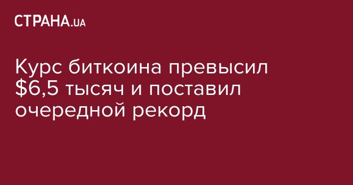 Курс биткоина превысил $6,5 тысяч и поставил очередной рекорд