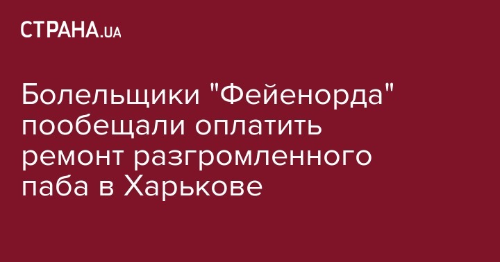 Голландские болельщики, которые накануне игры "Фейенорда с "Шахтером" в Лиге чемпионов "разбомбили" паб в Харькове, пообещали полностью компенсировать убытки заведения. Об этом сообщает "Громадське" со ссылкой на местную полицию.