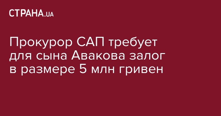 Прокурор САП требует для Александра Авакова залог в размере 5 млн гривен. Об этом сообщает корреспондент "Страны" с места событий.