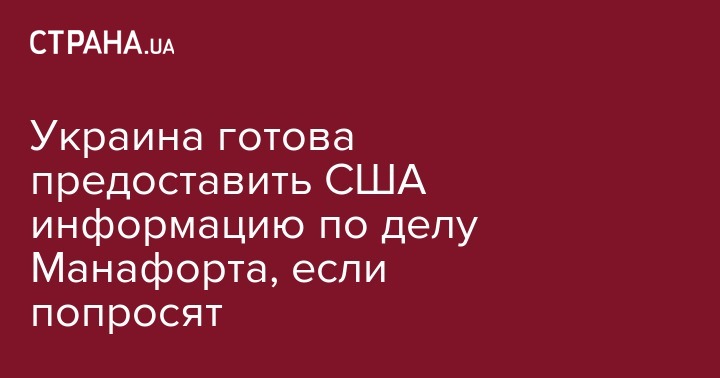 Украинские власти готовы предоставить Соединенным Штатам любую имеющуюся у них информацию, которая может помочь в расследовании дела экс- главы предвыборного штаба американского президента Дональда Трампа Пола Манафорта.