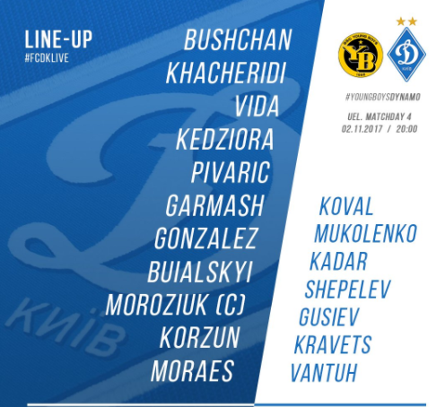 В четверг, 2 ноября, в Берне киевское Динамо в матче четвертого тура Лиги Европы сыграло против Янг Бойз.