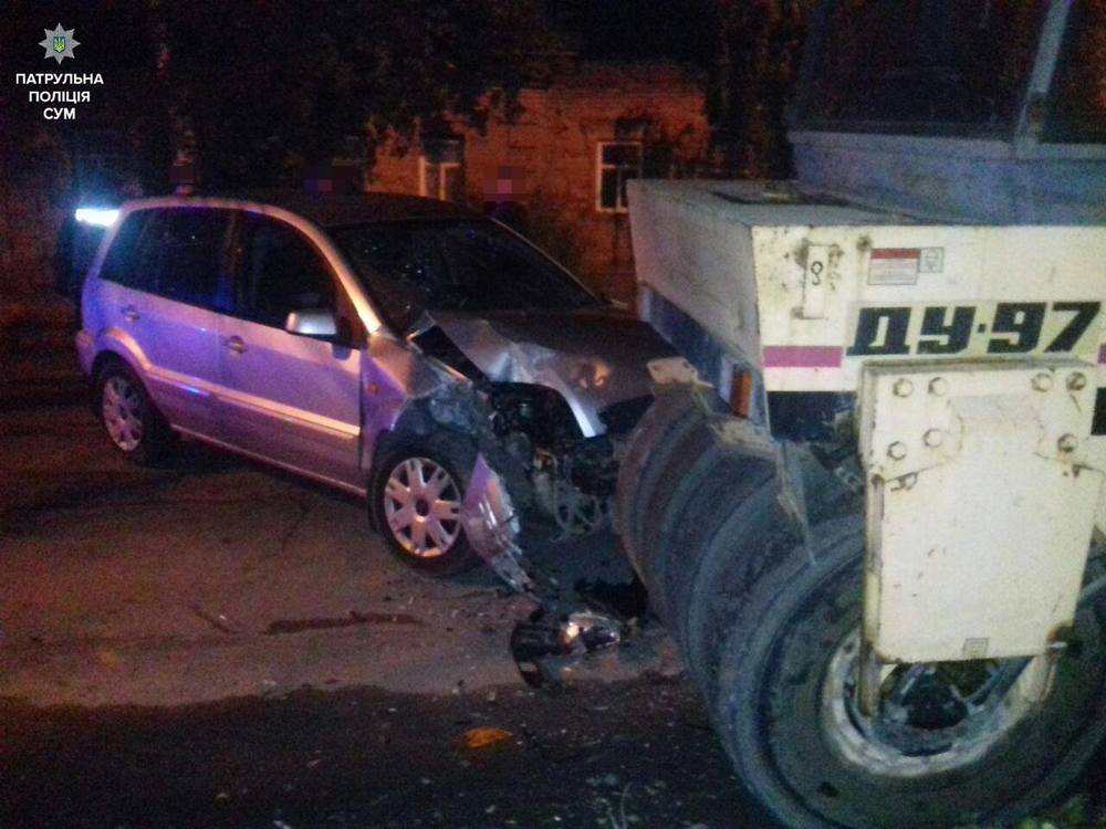 Пьяный водитель в Сумах пошел на таран дорожного катка