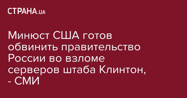 Минюст США готов обвинить правительство России во взломе серверов штаба Клинтон, - СМИ