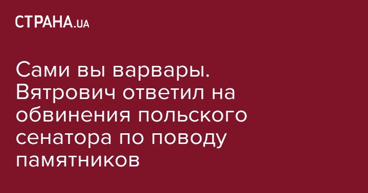 "Никаких оснований так говорить у поляков нет. Если говорить о цивилизованности и варварстве, то я хотел бы напомнить, что именно на территории Польши в течение трех лет 14 раз осквернены украинские православные кресты и памятники. В то время как на украинской территории все оскверненные (польские) памятники восстановлены... Тут стоит говорить о варварстве на польской территории по отношению к украинским памятникам", - сказал он.