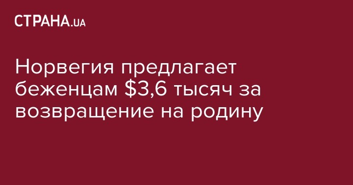 Норвежское ведомство по вопросами миграции предложило выплатить первым 500 беженцам, которые покинут страну и вернутся к себе на родину, по 10 тысяч крон (примерно $1215).