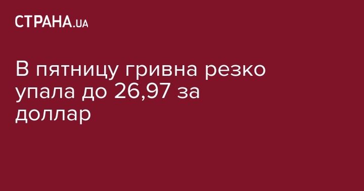 В пятницу, 3 ноября, котировки гривны к доллару США на межбанковском валютном рынке к середине торгов установились на уровне 26,95/26,97 грн за доллар. Об этом сообщил УНИАН дилер коммерческого банка.
