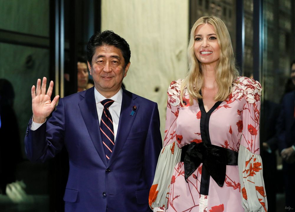 Иванка Трамп на встречу с премьером Японии пришла в эффектном платье с черным бантом
