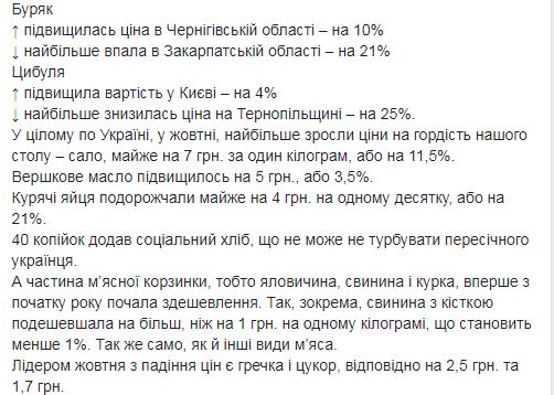 Об этом свидетельствуют данные Госкомстата в октябре, с 29 сентября по 30 октября, по регионам, которые привел председатель союза ассоциации поставщиков торговых сетей Алексей Дорошенко в социальной сети Facebook.