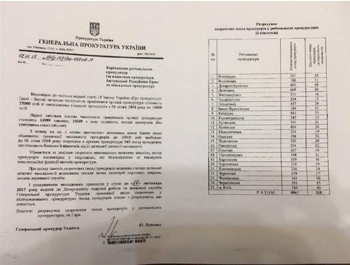 Как следовало из письма все того же Луценко, по состоянию на 10 октября на местах планировали "зарезать" 373 должности.