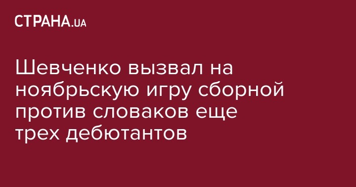 Главный тренер футбольной сборной Украины Андрей Шевченко вызвал в состав национальной команды, которая с 6 ноября будет готовиться к товарищескому матчу с командой Словакии, еще трех новобранцев, сообщает пресс-служба Федерации футбола Украины.