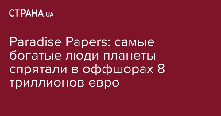 По данным оффшорного досье, которое было опубликовано Международным консорциумом журналистских расследований (ICIJ) 5 ноября Paradise Papers, богатейшие люди планеты разместили в оффшорах 7,9 триллионов евро.