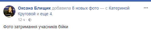 Также пресс-секретарь столичной полиции Оксана Блищик в Facebook опубликовала снимки задержания хулиганов, в котором участвовали несколько нарядов патрульных, сотрудники спецподразделения.