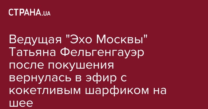 Ведущая "Эха Москвы" Татьяна Фельгенгауэр вернулась в эфир после покушения. Об этом она написала на своей странице в Twitter.