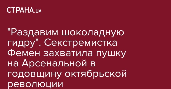 "Раздавим шоколадную гидру". Секстремистка Фемен захватила пушку на Арсенальной в годовщину октябрьской революции