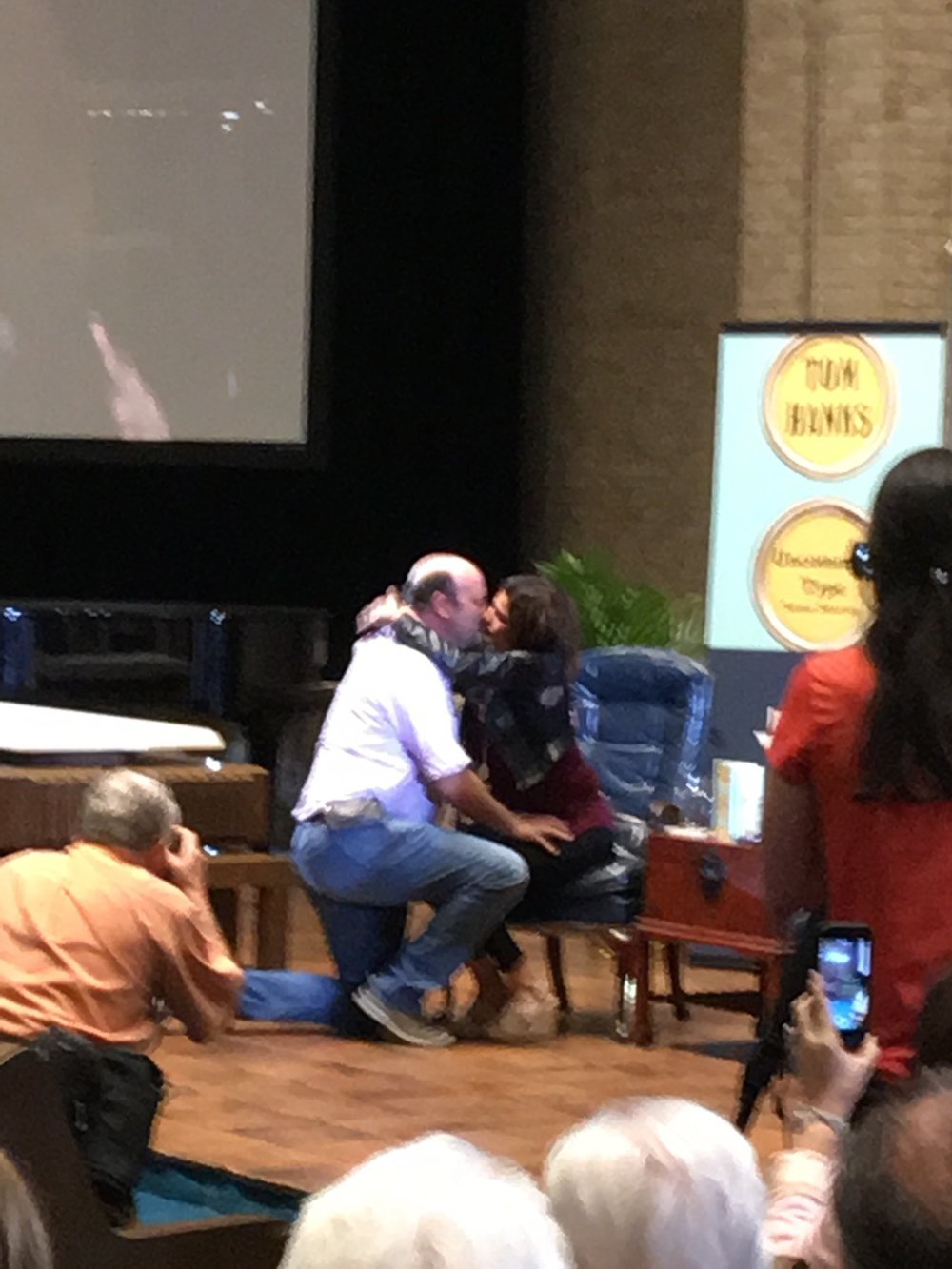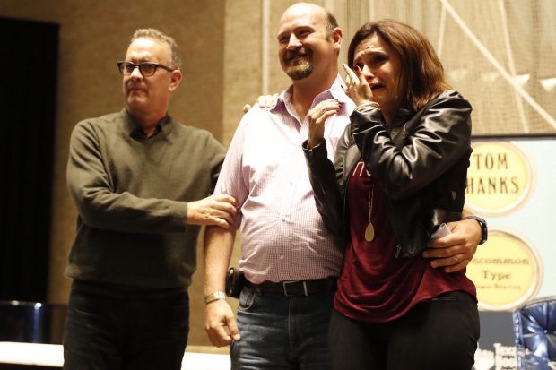 Американский актер Том Хэнкс на презентации сборника рассказов о пишущих машинках на Техасском книжном фестивале, помог сделать предложение мужчине из числа приглашенных в зале. Об этом сообщает People.