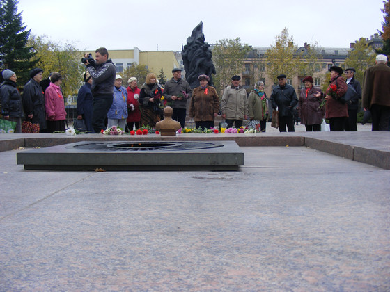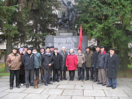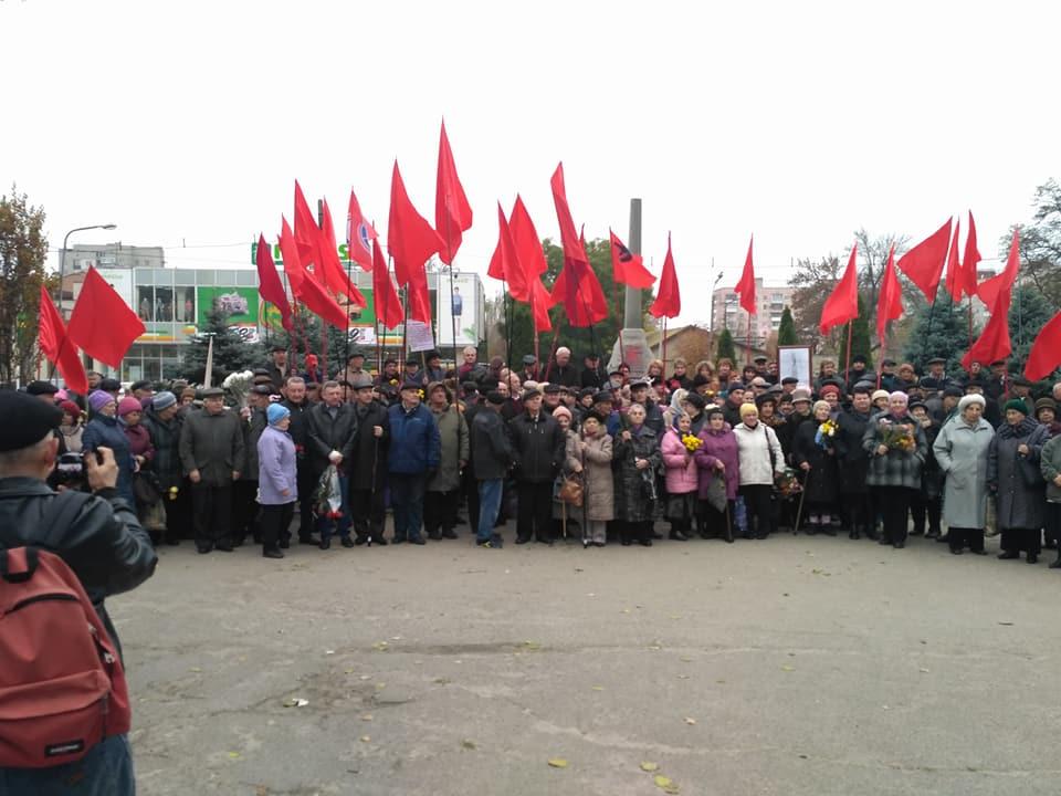В Кременчуге собрать полноценный митинг не получилось. Поэтому горстка коммунистов 5 октября собралась у памятника погибшим борцам за Власть Советов, чтобы получить почетные грамоты ЦК КПУ и юбилейные знаки "100 лет Октябрьской революции". Памятник не декоммунизировали, потому что это надгробный памятник на братской могиле 1918 года.