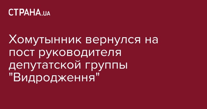 Нардеп Виталий Хомутынник вернулся на пост председателя депутатской группы "Видродження". Об этом сообщил глава парламента Андрей Парубий после закрытия утреннего пленарного заседания Рады, пишет РБК-Украина.