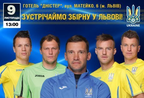 "Сине-желтые" приглашают всех желающих прийти в гостиницу "Днестр" в четверг, 9 ноября в 13:00 (ул. Матейко, 6), чтобы поздравить любимую команду. Не пропустите уникальную возможность встретиться со своими кумирами, получить автограф и сфотографироваться с игроками национальной сборной", - заявили в пресс-службе ФФУ.