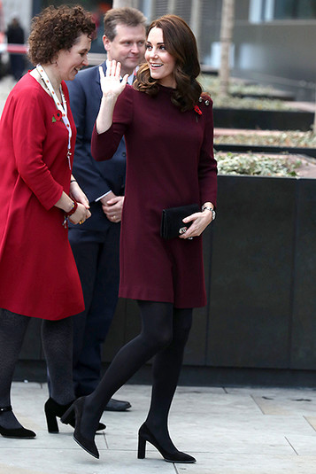 Беременная Кейт Миддлтон вышла в свет в закрытом платье винного оттенка