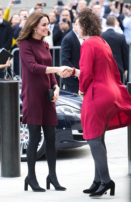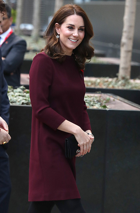 8 ноября герцогиня появилась на благотворительном мероприятии Place2Be, во время которого обсудила с участниками конференции тему психического здоровья детей школьного возраста. Для выхода в свет Кейт выбрала платье цвета бургунди, который не теряет актуальность которую осень подряд.