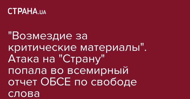 "События вокруг средства массовой информации могут быть возмездием за критический характер материалов Strana.ua, в том числе в отношении высокопоставленных правительственных чиновников", - пишет в отчете представитель ОБСЕ по свободе прессы Арлем Дезир.
