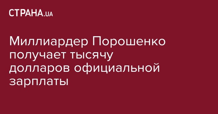 Миллиардер Порошенко получает тысячу долларов официальной зарплаты