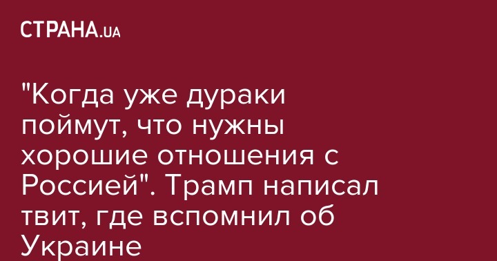 "Когда же уже все ненавистники и дураки поймут, что хорошие отношения с Россией – хорошая, а не плохая вещь" - написал Трамп.