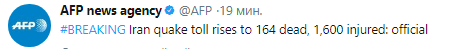 В результате мощного землетрясения магнитудой 7,6 балла, которое произошло на границе Ирана и Ирака, погибли уже 164 человека. Об этом в Twitter сообщает AFP.