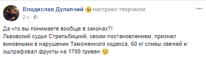 В соцсетях решение судьи Стрельбицкого вызвало иронию. Адвокат Владислав Дулапчий задается риторическим вопросом "Да что вы понимаете вообще в законах?!", - пишет он на своей странице в Facebook.